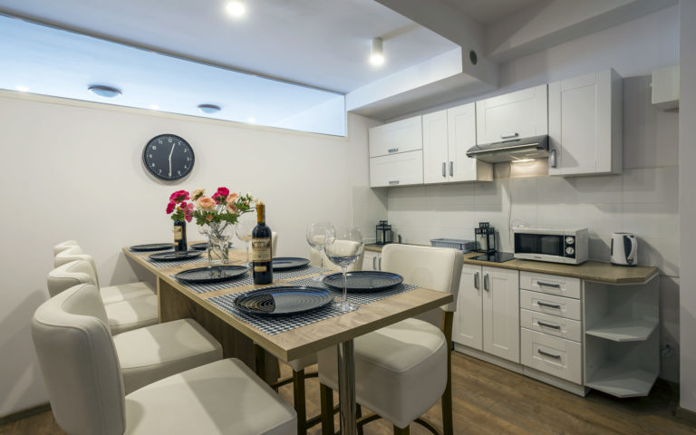 Wyposażenie: telewizor, telewizja kablowa, herbata i kawa w aneksie kuchennym, czajnik elektryczny, płyta indukcyjna, mikrofalówka, bezpłatne Wi-Fi, szafa, 2 łazienki z prysznicem, suszarka do włosów, ręczniki, szampon, żel, mydło, pościel.