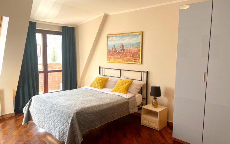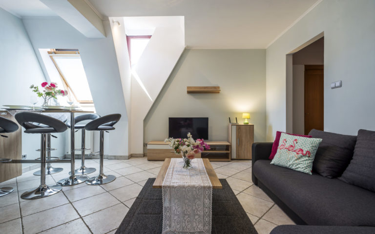- Łóżka: 1 małżeńskie, 1 pojedyncze, 1 kanapa rozkładana