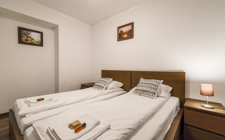 - Łóżka: 4 łóżka pojedyncze, 2 łóżka małżeńskie