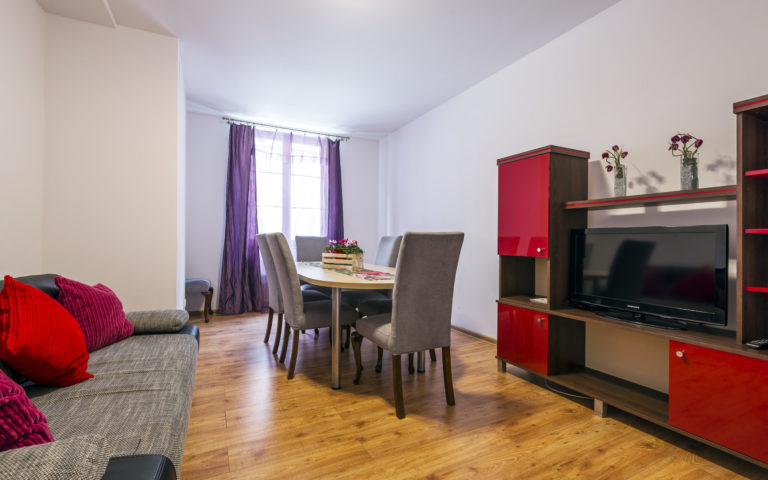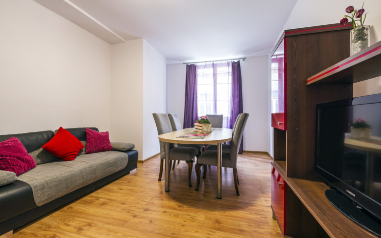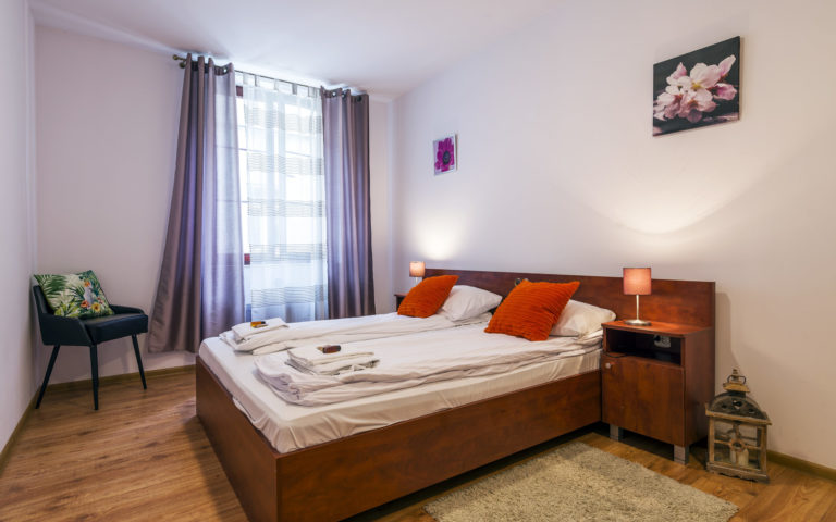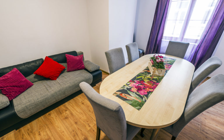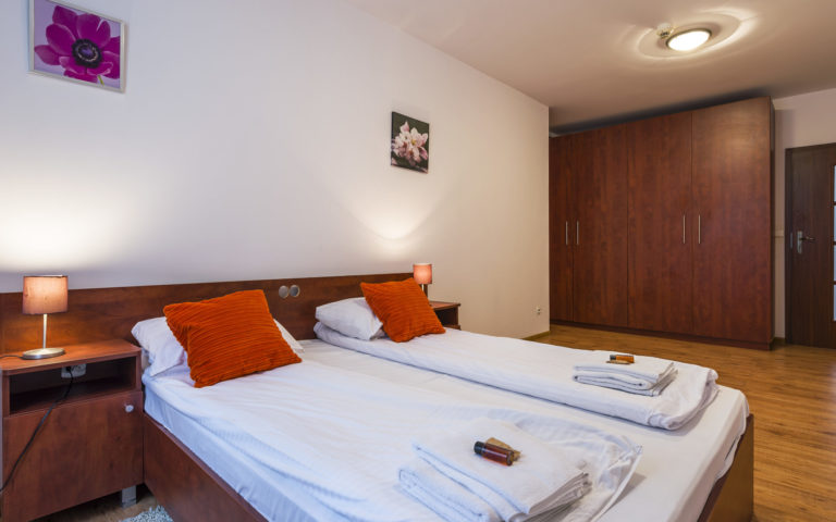 - Łóżka: 2 łóżka pojedyncze, 1 łóżko małżeńskie, 1 kanapa rozkładana