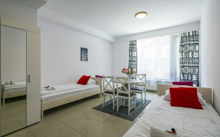 Wyposażenie: telewizor, telewizja kablowa, herbata i kawa w aneksie kuchennym, czajnik elektryczny, płyta indukcyjna, mikrofalówka, bezpłatne Wi-Fi, szafa, 2 łazienki z prysznicem, suszarka do włosów, ręczniki, szampon, żel, mydło, pościel.