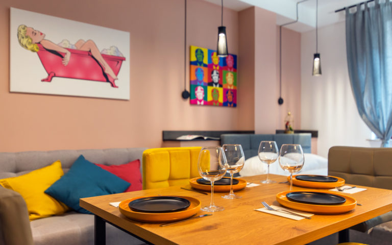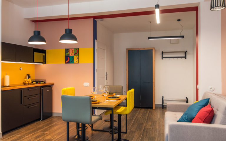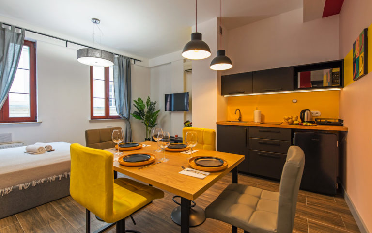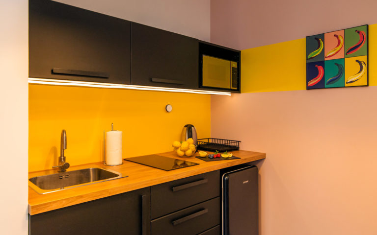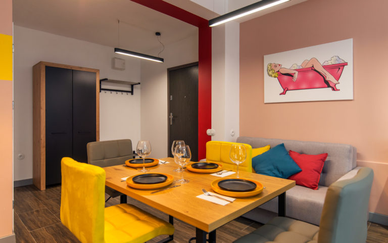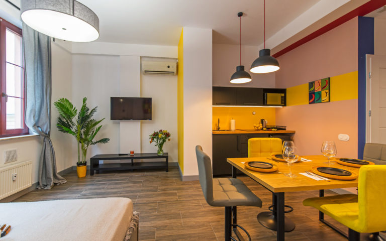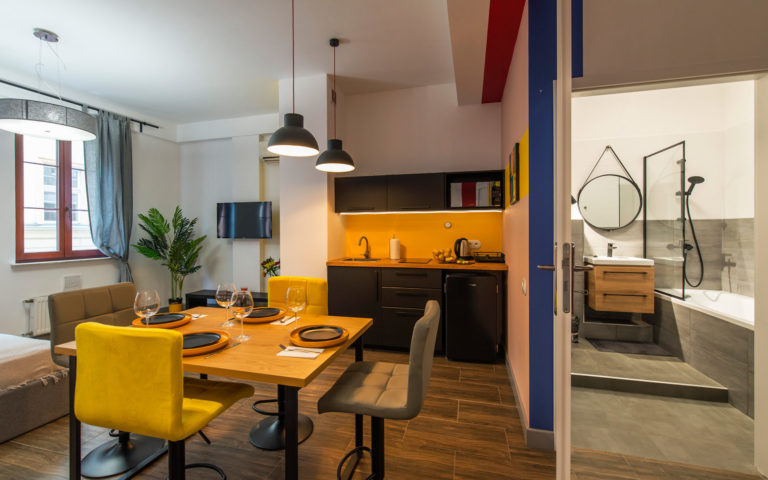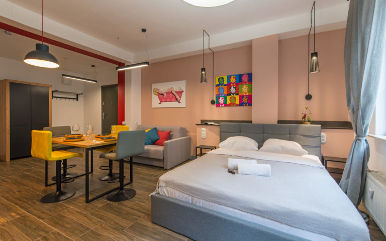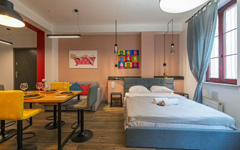 Wyposażenie: telewizor SmartTV, telewizja kablowa, herbata i kawa w aneksie kuchennym, czajnik elektryczny, bezpłatne Wi-Fi, szafa, wanna, toaleta, łazienka, suszarka do włosów, ręczniki, szampon, żel, mydło, pościel.