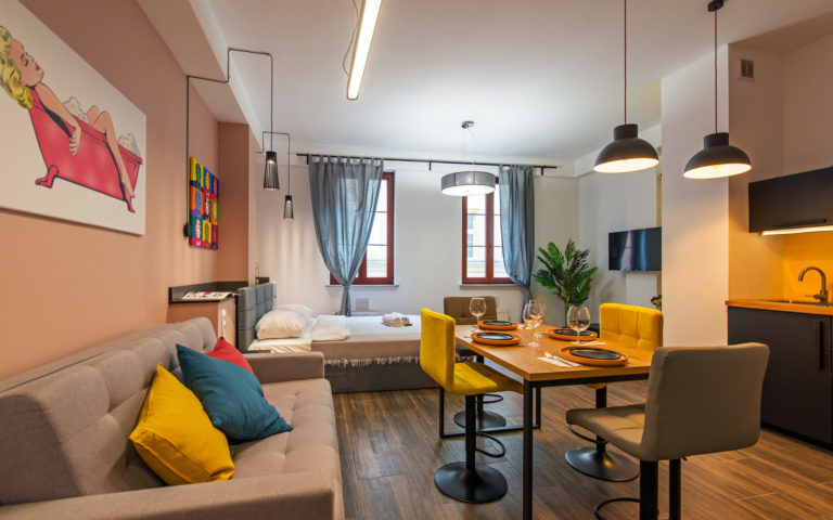 - Łóżka: 1 łóżko małżeńskie, 1 sofa rozkładana